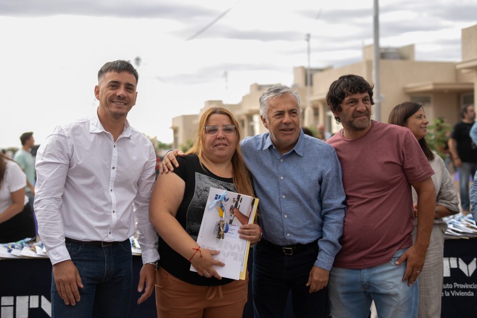 Durante el acto, el mandatario provincial hizo entrega de llaves y carpetas a las familias adjudicatarias, acompañado por el intendente de Guaymallén, Marcos Calvente; la subsecretaria de Infraestructura y Desarrollo Territorial, Marité Badui; el presidente del Instituto Provincial de la Vivienda (IPV), Gustavo Cantero, y demás autoridades.