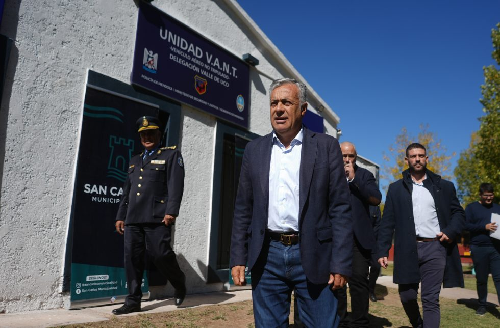 El gobernador Alfredo Cornejo, acompañado por la ministra de Seguridad y Justicia, Mercedes Rus, y el intendente de San Carlos, Alejandro Morillas, encabezó la inauguración de la Delegación VANT Valle de Uco. El acto tuvo lugar en el Polideportivo Angélica Civit de Suárez de La Consulta.