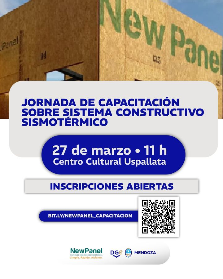 Uspallata será escenario de una jornada de capacitación sobre el sistema constructivo sismotérmico New Panel, una propuesta orientada a difundir nuevas tecnologías aplicadas a la construcción. El encuentro tendrá lugar el viernes 27 de marzo, desde las 11, en el Centro Cultural de la localidad.