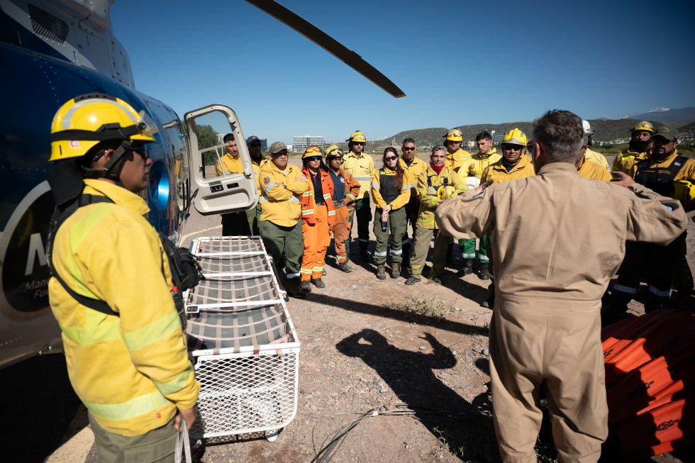 La actividad se llevó a cabo a lo largo de tres jornadas en el Aeroclub La Puntilla, donde participaron brigadistas, bomberos, personal de Defensa Civil, guardaparques —incluidos equipos de la Reserva Villavicencio—, además de instructores provinciales y nacionales. En el marco de las prácticas, también se incorporaron recursos aéreos, como el helicóptero de la Policía de Mendoza, lo que permitió realizar ejercicios en condiciones similares a las de un operativo real.