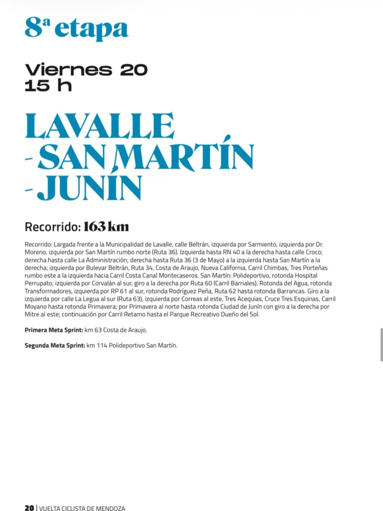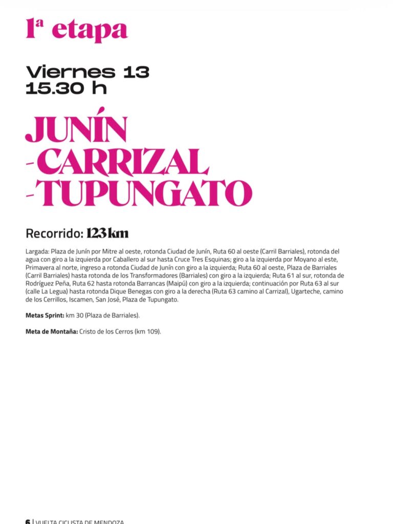 El trazado atravesará distintas regiones de la provincia, incluyendo el Gran Mendoza, el Valle de Uco, la Zona Este y el Sur provincial, donde se disputarán etapas de montaña, velocidad y terrenos mixtos. Cada departamento ultima detalles para recibir a la caravana multicolor que, año tras año, convoca a miles de vecinos y amantes del deporte.