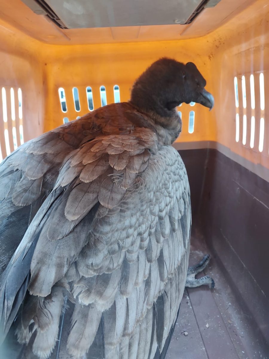 Un cóndor andino juvenil fue rescatado en Valle Grande, San Rafael, luego de que un ciudadano alertará al 911 sobre un ejemplar que no podía volar. Personal de la Policía Rural activó el protocolo y aseguró al ave, que fue trasladada para recibir atención veterinaria.