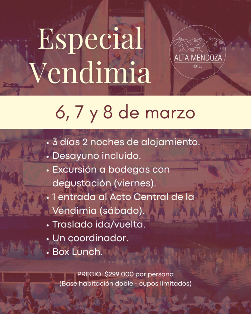 La propuesta se desarrollará los días 6, 7 y 8 de marzo, e incluye alojamiento, excursiones, gastronomía y una entrada al Acto Central de la Vendimia, combinando turismo, vino y tradición mendocina.