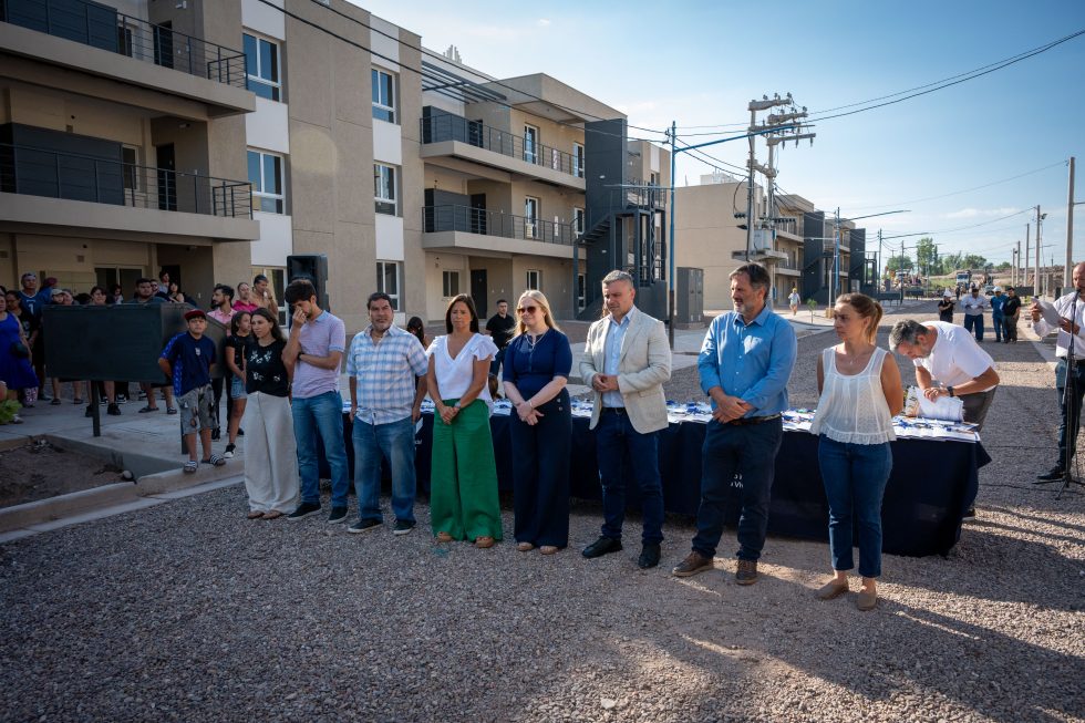 El acto se desarrolló en el complejo ubicado en la intersección de Salvador Civit y Cantero, y contó con la presencia de la vicegobernadora Hebe Casado; el intendente de Godoy Cruz, Diego Costarelli; la subsecretaria de Infraestructura, Marité Badui, y el presidente del Instituto Provincial de la Vivienda (IPV), Gustavo Cantero.