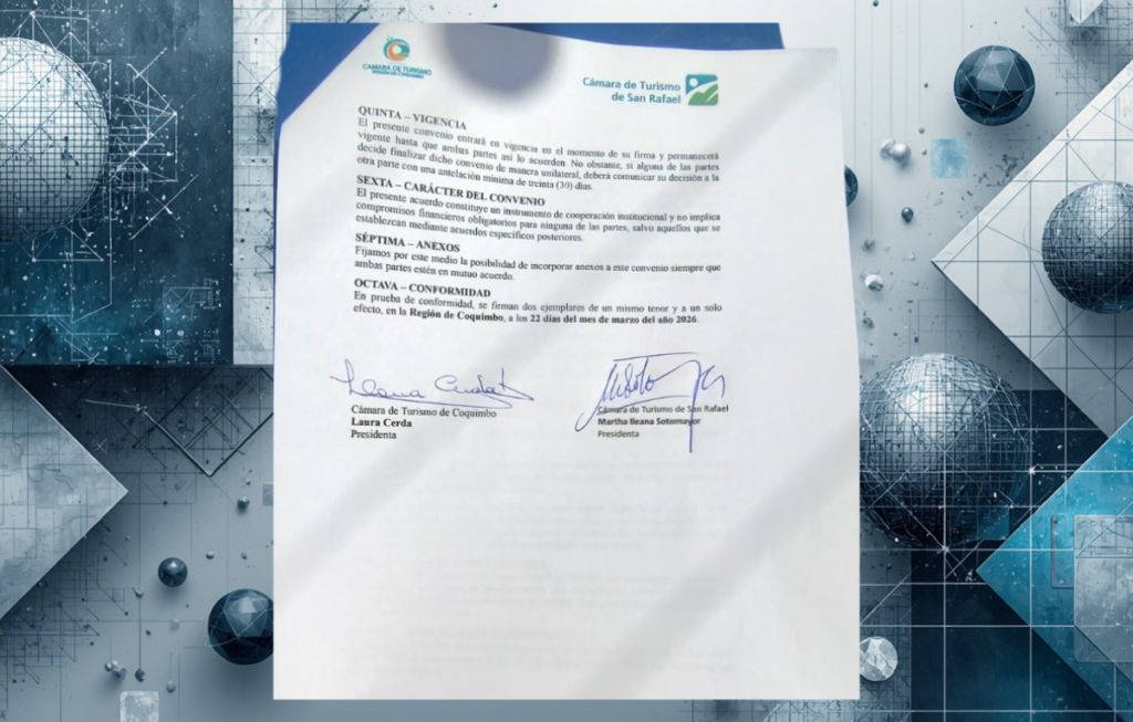 En un hito que marca un antes y un después para la integración regional entre Argentina y Chile, la Cámara de Turismo de San Rafael (Mendoza) y la Cámara de Turismo de Coquimbo han formalizado el 22 de Marzo pasado, la firma de un Convenio de Colaboración Institucional estratégico.
