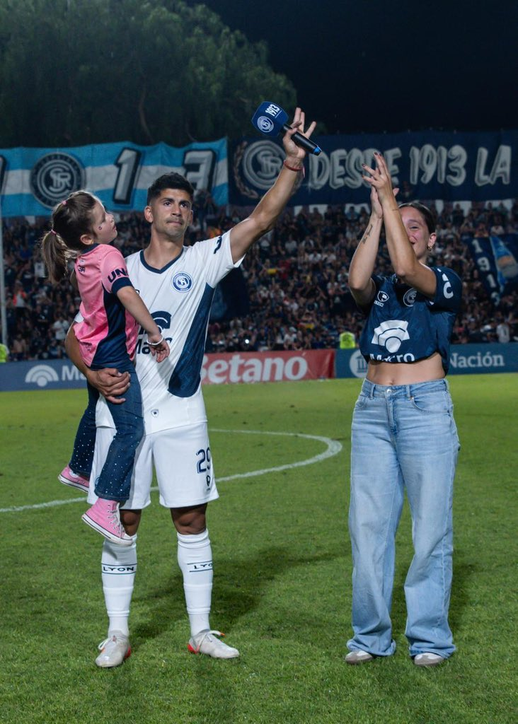 Antes del inicio del encuentro, el estadio Bautista Gargantini se vistió de emoción para rendir homenaje a Luciano Abecasis, uno de los grandes protagonistas de la historia reciente del club.