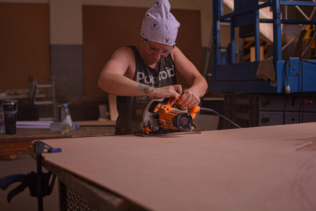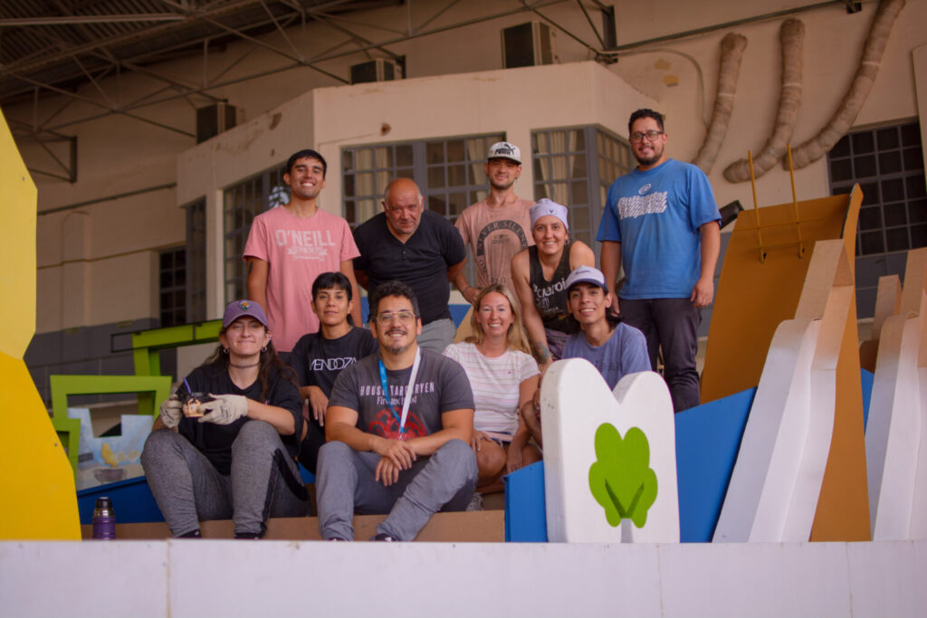El carro vendimial de la Ciudad fue diseñado por Emir Vanella y Alejo Lepe, bajo la supervisión de la arquitecta Fernanda Rivera, responsable del taller de escenografía municipal.
