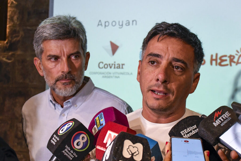 Bernardo Lanzilotta, presidente del Fondo Vitivinícola Mendoza, durante la presentación oficial de la Fiesta de la Cosecha 2026, que celebrará sus 25 años con un concierto sinfónico en el viñedo del Aeropuerto de Mendoza.Foto Prensa Municipalidad de Mendoza.