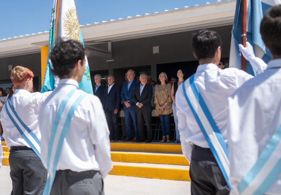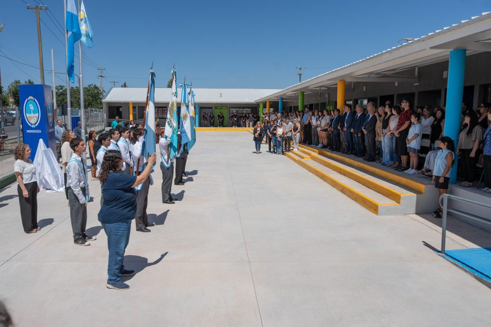 El acto de inauguración contó con la presencia del gobernador Alfredo Cornejo; el ministro de Educación, Cultura, Infancias y Dirección General de Escuelas (DGE), Tadeo García Zalazar; el intendente de Maipú, Matías Stevanato; y familiares de Alejandro Bermejo, cuyo nombre lleva la institución.