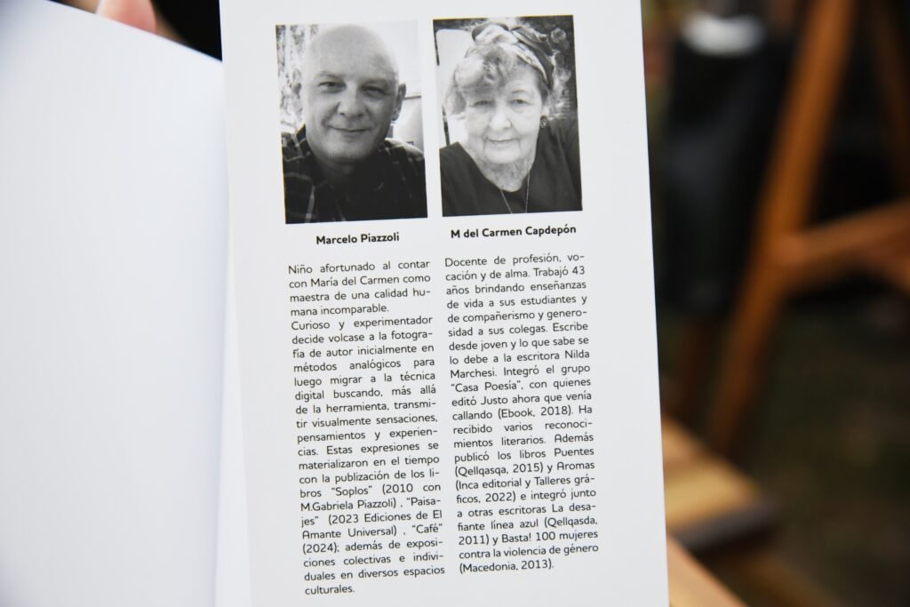 La jornada también incluyó música en vivo a cargo de Juanci Moreno en guitarra y Mariano Dalla Torre en la voz. Además, los asistentes pudieron disfrutar de una exposición fotográfica de Marcelo Piazzoli, cuyas imágenes forman parte del libro y dialogan con el universo poético de la autora.