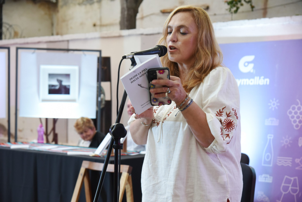 Presentación de “Desde la piel hacia adentro” en Salas de Arte Libertad, donde María del Carmen Capdepón compartió su obra junto a Marcelo Piazzoli y Eliana Dajer en un emotivo encuentro cultural.Foto Prensa Guaymallén.