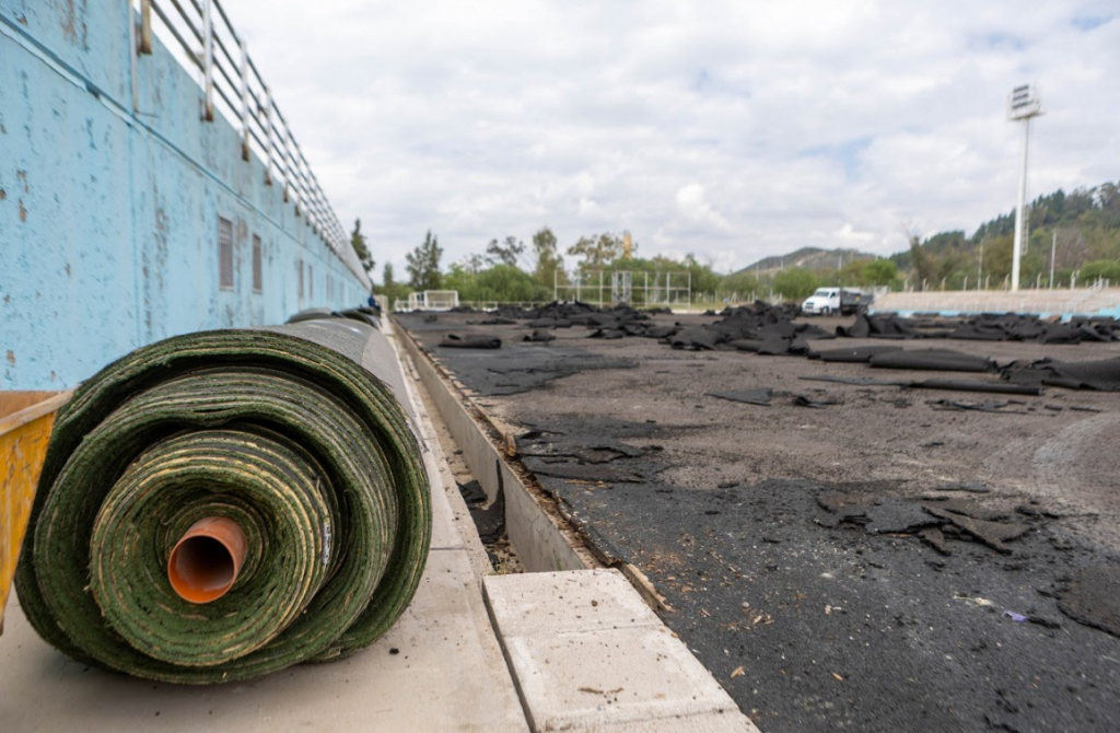 En esta primera etapa, las intervenciones técnicas se concentraron en la limpieza del predio, junto con el retiro y acopio de materiales. Esto incluyó el levantamiento del césped y de la alfombra sintética existente, un procedimiento que se llevó adelante bajo estrictos protocolos de cuidado para preservar su estado y permitir su futura reutilización en otros espacios deportivos.