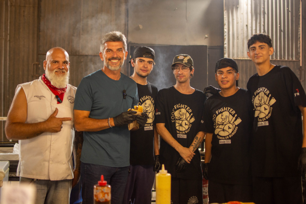 El intendente de la ciudad, Ulpiano Suarez, también participó activamente de la propuesta. Durante la jornada se sumó a cocinar junto al equipo de Food Fighter y, guiado por el chef Ariel Sovil, preparó una hamburguesa estilo “Maicol”, con cheddar y panceta. En medio de la demostración culinaria, el cocinero le explicó cómo reconocer el punto justo de cocción de la carne observando los jugos que desprende la hamburguesa.