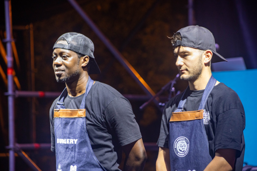 La gran final enfrentó entonces a Roux Street y Burgery. Sobre el escenario, los cocineros Martín y Ralf tuvieron apenas ocho minutos para preparar sus hamburguesas en vivo frente al jurado y a los cientos de espectadores que seguían cada movimiento.