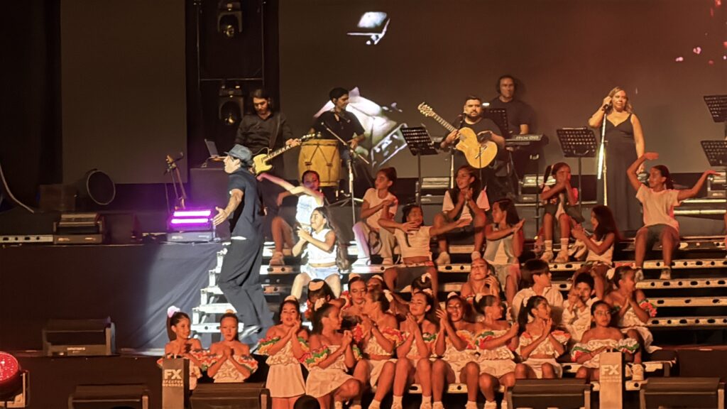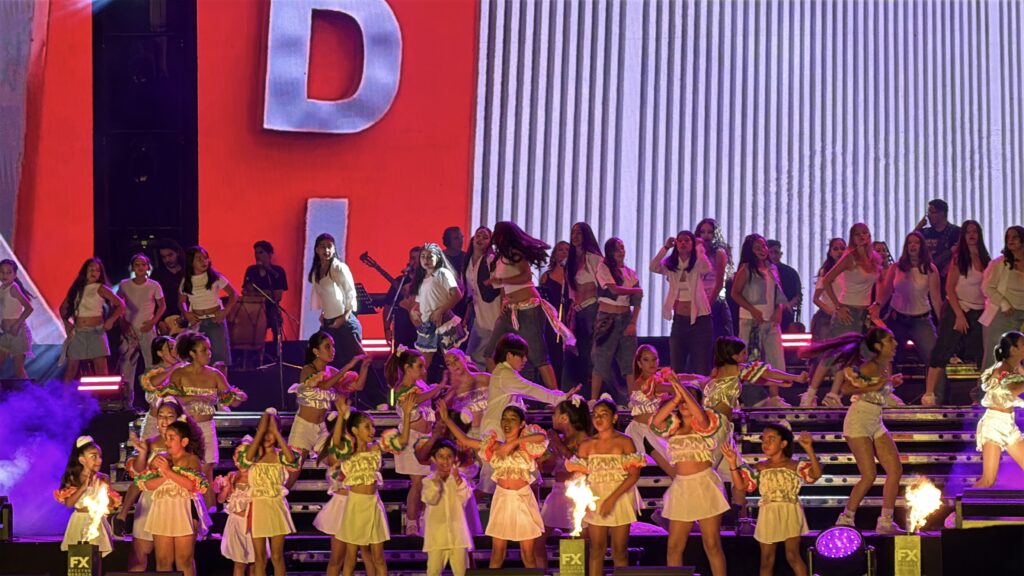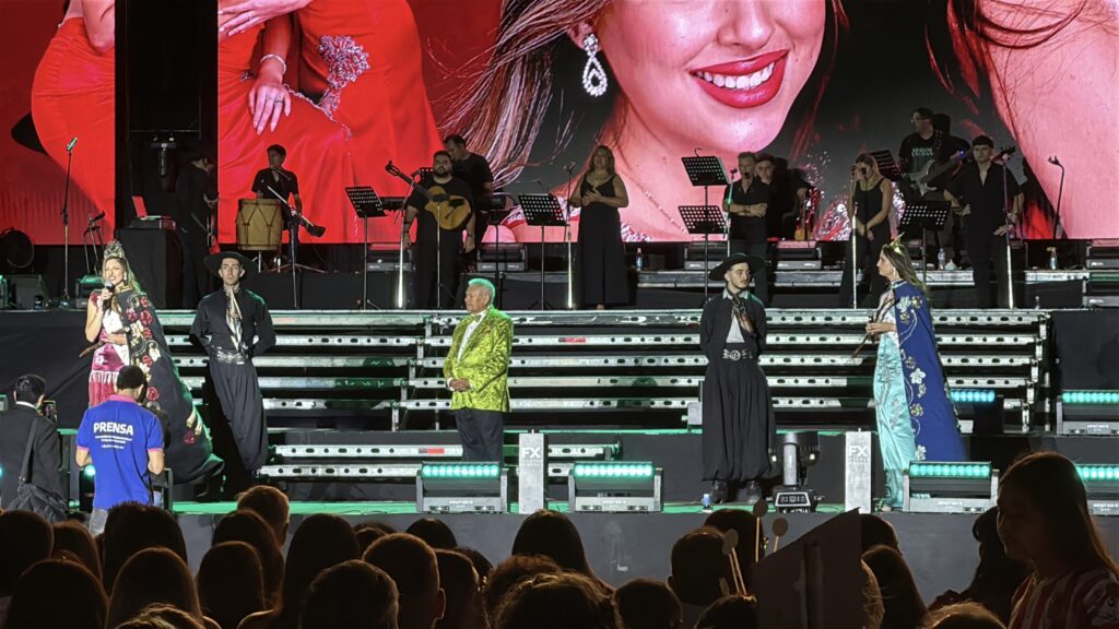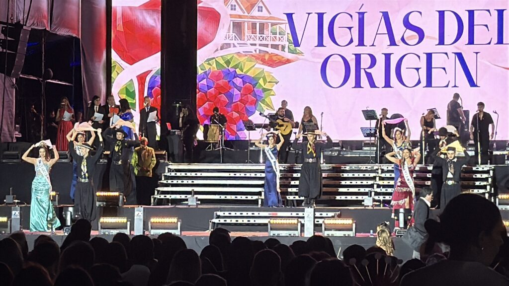 La Vendimia departamental llevó por nombre “Vigías del origen”, una propuesta artística que recorrió la historia e identidad santarrosina a través de figuras simbólicas que representaron la memoria viva de la comunidad. En escena se evocaron las raíces del departamento, el legado de los antepasados y el valor patrimonial de la Casa Ventura Segura como referencia histórica y cultural.