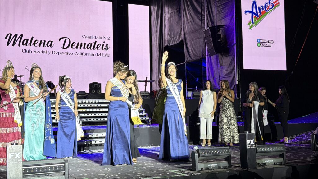 En los primeros minutos de este domingo 15 de febrero, el departamento de Santa Rosa definió a su nueva representante vendimial. Malena Agustina Demateis fue coronada reina departamental de la Vendimia 2026 durante una celebración realizada en el Parque Cultural y Recreativo Ventura Segura, en coincidencia con los 90 años de la fiesta departamental y la apertura de la 44ª edición del Festival Nacional de la Cueca y el Damasco.