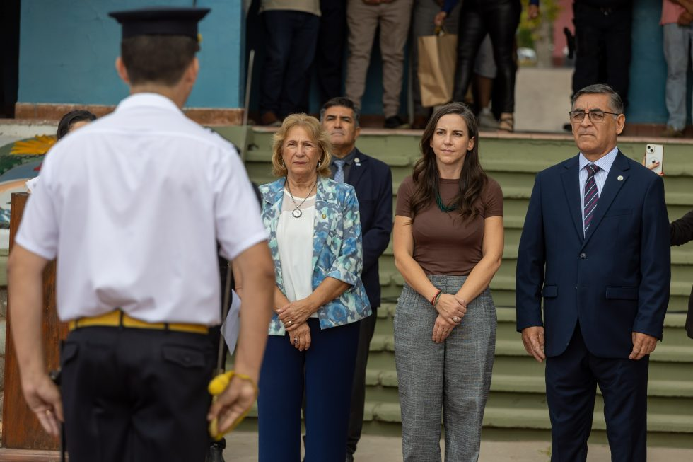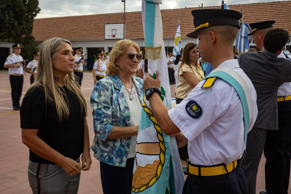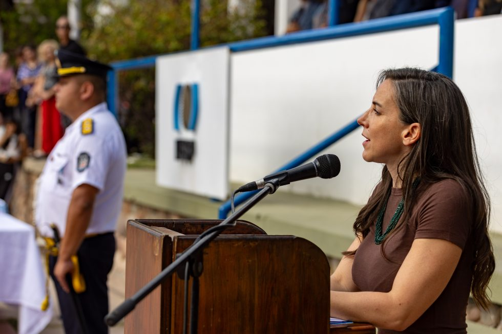 Durante su discurso, Mercedes Rus brindó un mensaje dirigido especialmente a quienes inician su carrera en la fuerza, destacando la importancia de la decisión personal como motor de crecimiento. “No están aspirando a un aula cualquiera ni comenzando una etapa más: están cruzando una frontera, la que separa una vida sin rumbo de una vida con propósito. Créanme, esa es hoy la mayor riqueza”, sostuvo.