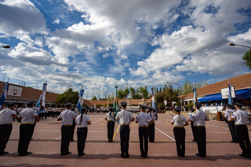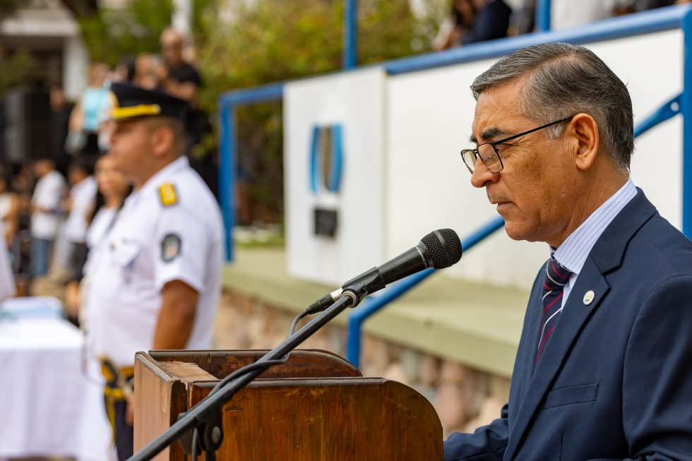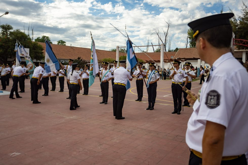 La actividad incluyó el tradicional cambio de abanderados nacionales y provinciales, reconocimientos a personal jubilado y la conmemoración de los 25 años de la primera promoción de técnicos universitarios.