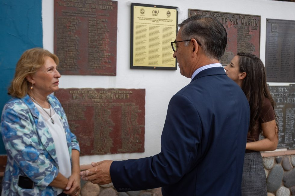 El acto fue encabezado por la ministra de Seguridad y Justicia, Mercedes Rus; el director general del IUSP, Alberto Rivero; el director ejecutivo, Ignacio Nasif, y la rectora de la Universidad Nacional de Cuyo, Esther Sánchez. También participaron el jefe de la Policía de Mendoza, Marcelo Calipo; el director y la subdirectora del Servicio Penitenciario, Eduardo Orellana y Alejandra Llarena; la directora de Capital Humano, Adriana Bertolatti, y los directores generales de Relaciones con la Comunidad, Hernán Amat, y de Investigaciones, José Vega.