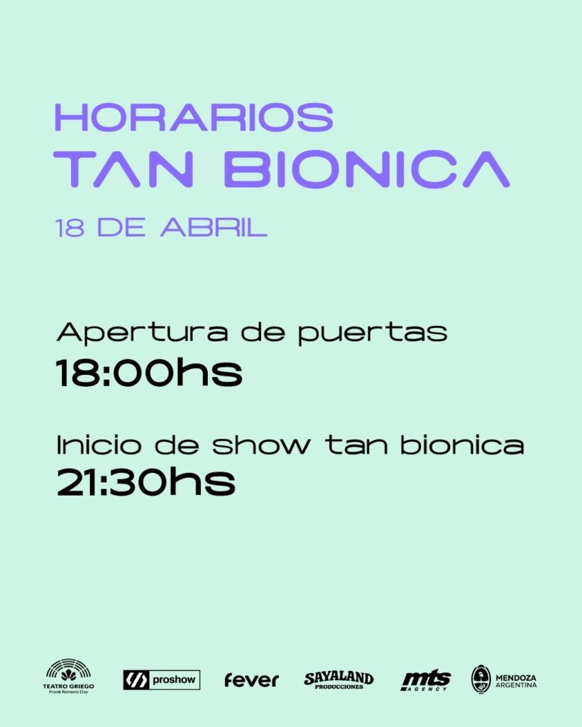 Comienza la cuenta regresiva para el esperado regreso de Tan Biónica a Mendoza. La banda se presentará hoy sábado 18 de abril en el Teatro Griego Frank Romero Day, en lo que será su único show en Cuyo y una noche que promete emoción, nostalgia y una producción de nivel internacional.