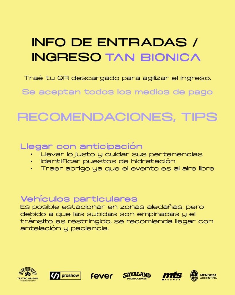 Con todo listo, Mendoza se prepara para vivir una noche inolvidable con el regreso de Tan Biónica, en un show único en la región que promete marcar uno de los momentos musicales más importantes del año.