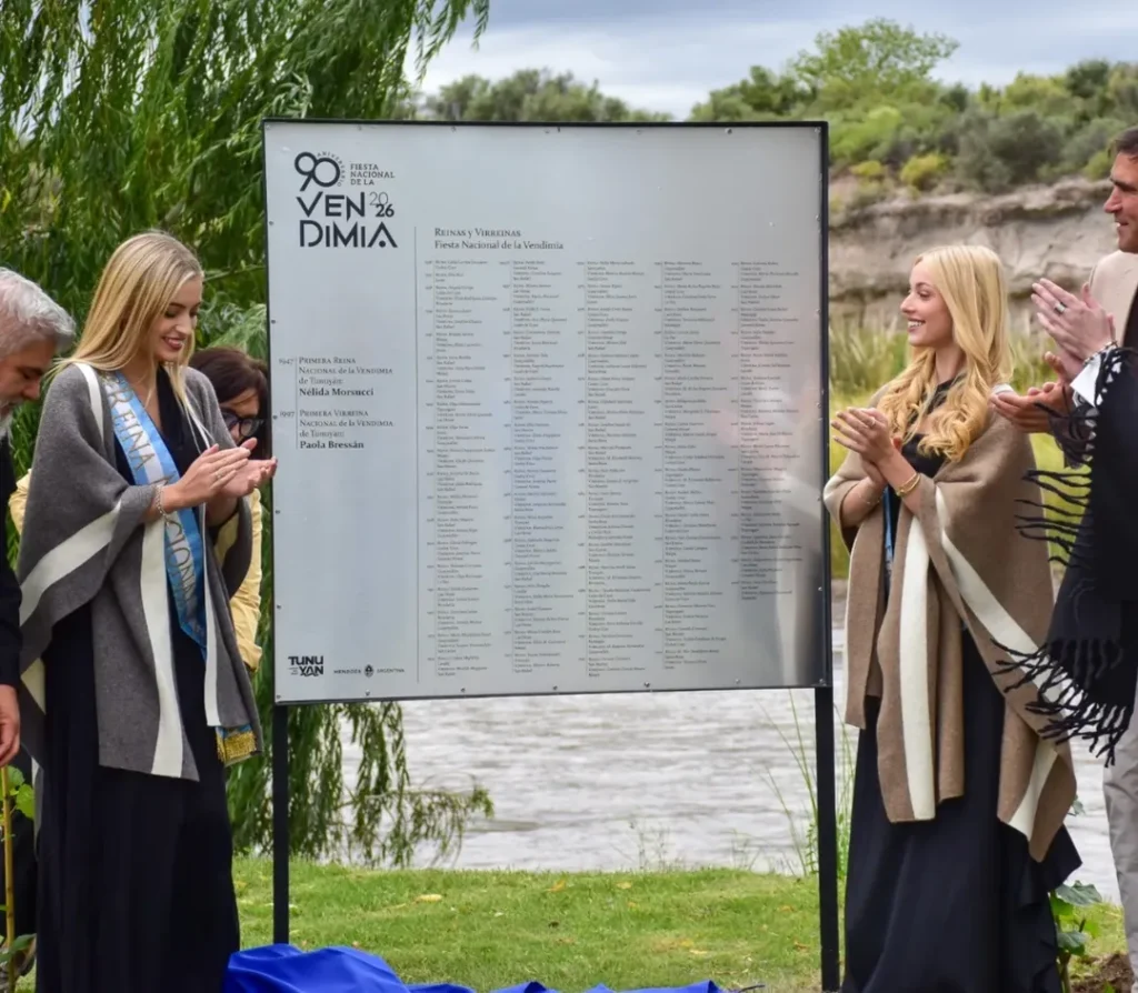 Durante la ceremonia, participaron también Azul Antolínez, actual Reina Nacional de la Vendimia, y Agustina Giacomelli, Virreina Nacional, quienes formaron parte de este homenaje que reunió a distintas generaciones de soberanas.