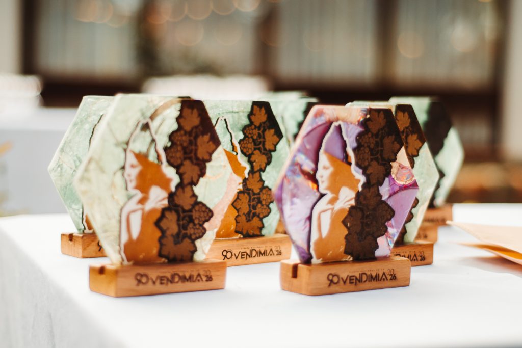 Durante la ceremonia se entregó el galardón “Delia Larrive Escudero”, una pieza de arte sustentable realizada con materiales reciclados de la industria vitivinícola, destinada a reconocer a quienes construyen la Vendimia desde el trabajo silencioso y la vocación cultural.