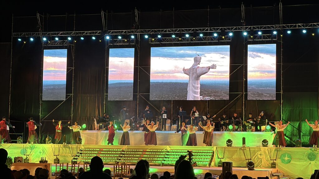 A lo largo del espectáculo se sucedieron distintos cuadros que reflejaron la identidad de Tupungato: la inmigración y sus huellas culturales, el trabajo de finca y la vida rural, la educación y el vínculo histórico entre bodegas y escuelas, y la fe popular. Uno de los momentos más sentidos fue el ingreso de finqueras que, con una plegaria a la Virgen de la Carrodilla —Patrona de los Viñedos—, elevaron un pedido de protección para las viñas frente al granizo.
