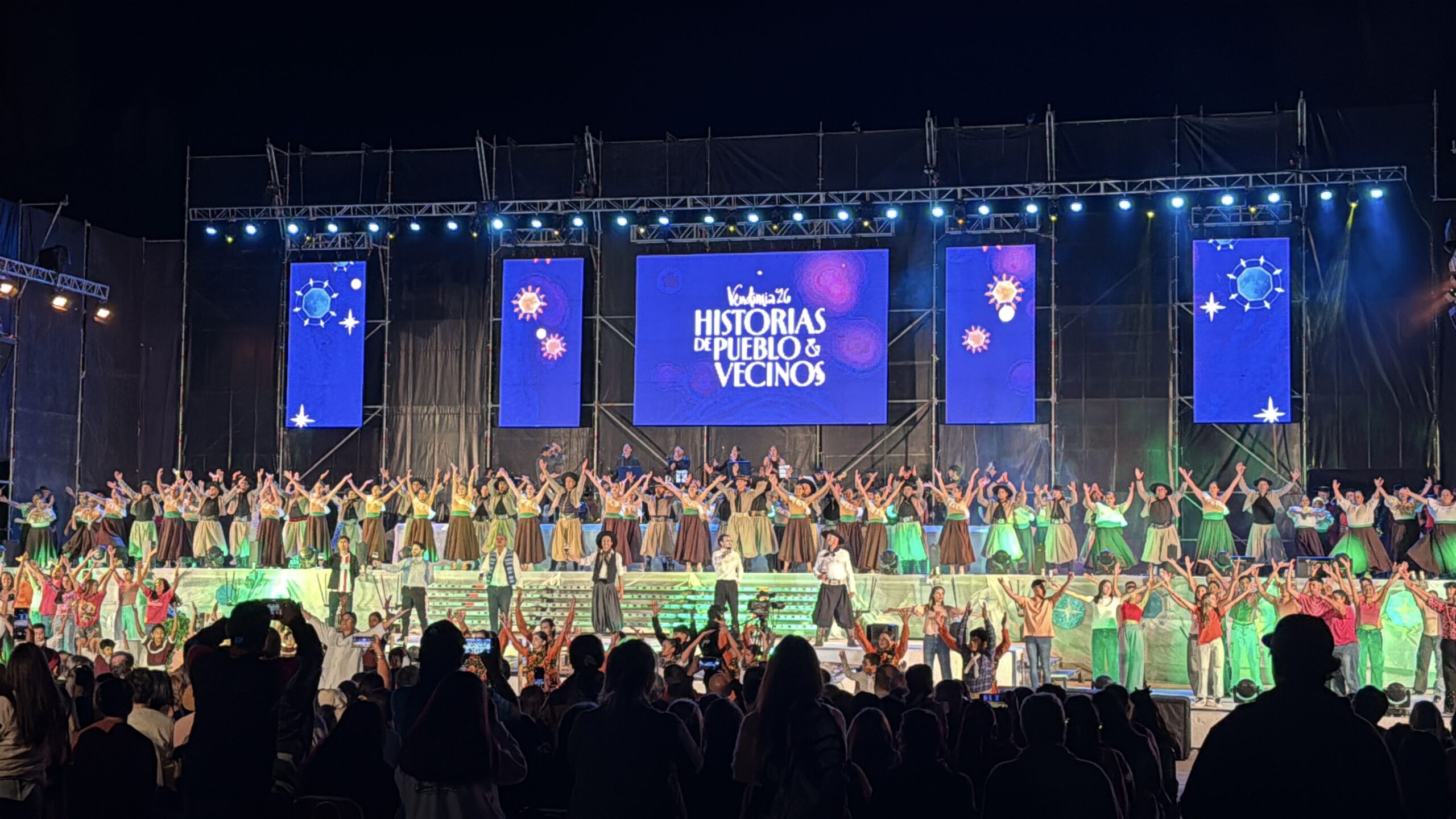 La puesta estuvo dirigida por Virginia Pili Paes y Héctor Gomina, con guion de Alicia Casares, y contó con la participación de más de 200 artistas en escena, entre actores, bailarines, músicos y elenco teatral. La música fue interpretada en vivo y el hilo narrativo se construyó desde una taberna del centro del departamento, que funcionó como punto de encuentro para dar paso a historias reconocibles por la comunidad.