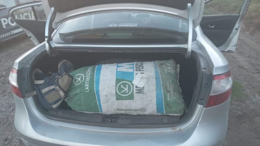 Uno de los procedimientos tuvo lugar en una finca ubicada en la intersección de calle Rosa Bazán y Nueva Furno, en Cordón del Plata. El operativo se inició a partir de un llamado al 911 que advertía sobre la presencia de hombres robando nueces. Mientras el móvil policial se dirigía al lugar, los efectivos detectaron un Renault Fluence gris que circulaba a alta velocidad en sentido contrario.