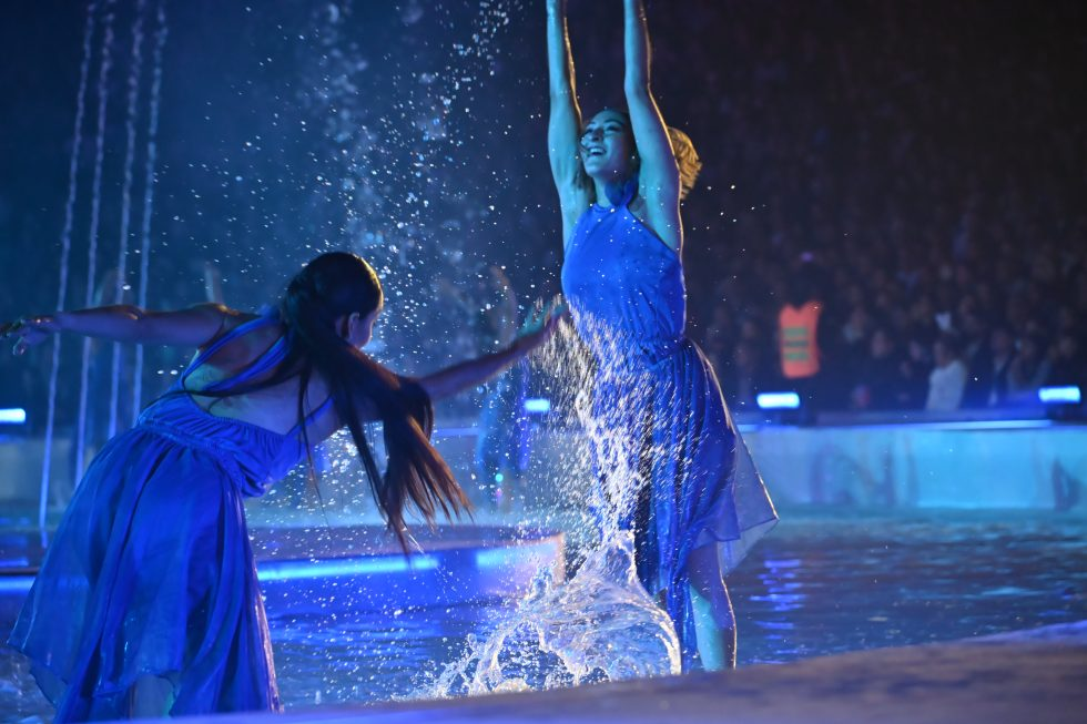 El espectáculo también recuperó elementos clásicos muy recordados por el público, como el tango en el agua, los pisos iluminados desde abajo, la cinta transportadora de botellas y la tradicional escena del gaucho brindando.