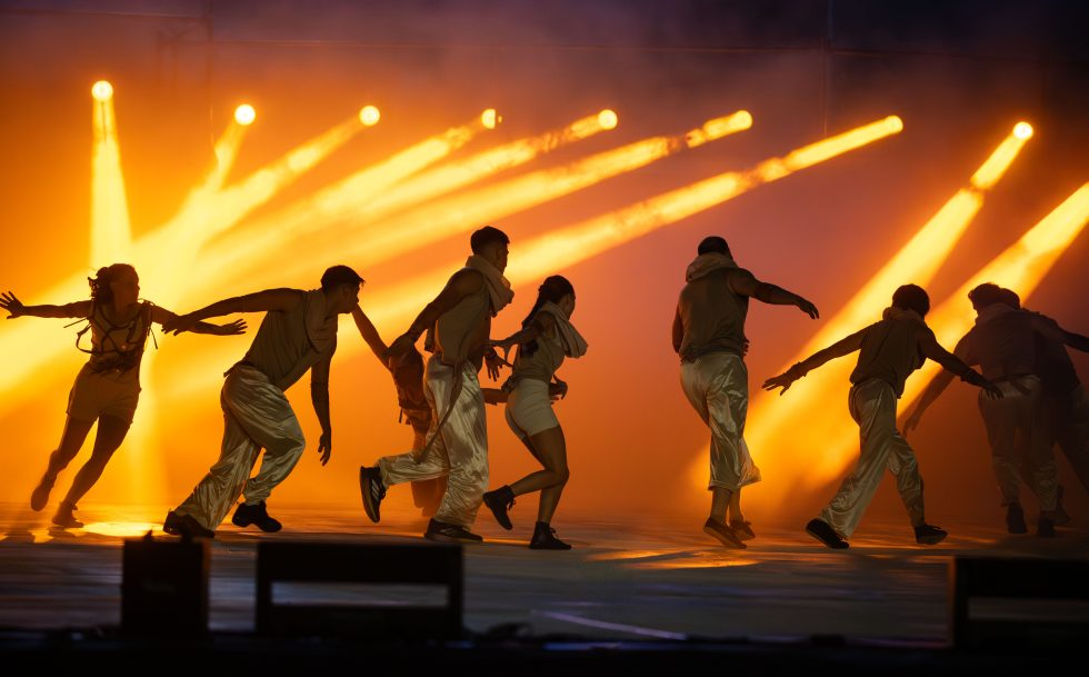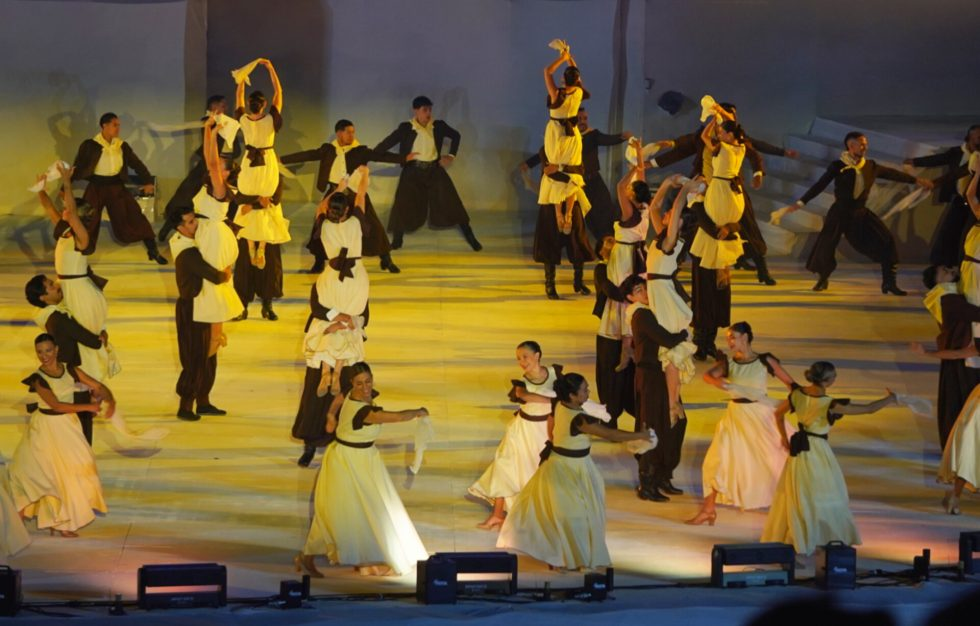 En el cuadro final, los bailarines lucieron vestuarios de color rosa viejo, en referencia a la piedra granito, símbolo del 90° aniversario. Este detalle escénico representó la solidez y la eternidad del amor, reforzando el mensaje de permanencia y continuidad que caracteriza a la Fiesta Nacional de la Vendimia.