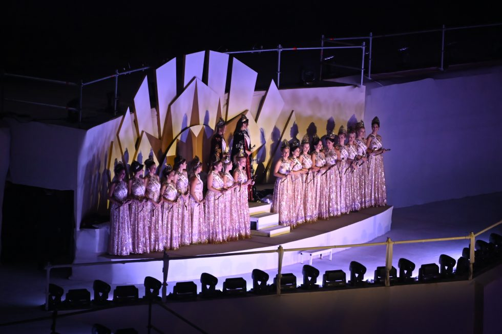 En distintos cuadros del espectáculo participaron además las reinas departamentales, junto a la Reina y la Virreina Nacional de la Vendimia 2025, quienes formaron parte de las coreografías y acompañaron el desarrollo de la historia, sumando un momento especial de celebración vendimial.