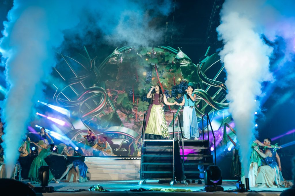 A partir de ese momento, la inteligencia artificial comenzó a atravesar el relato vendimial como recurso narrativo, planteando el eje principal de la puesta: el vínculo entre lo heredado y lo contemporáneo, en el contexto de los 90 años de la primera Fiesta Nacional de la Vendimia.