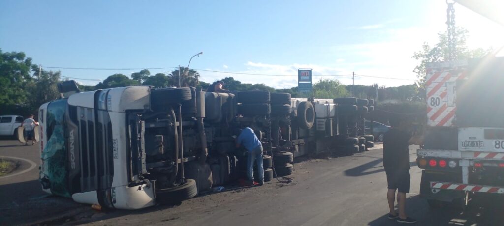 El rodado, un Scania perteneciente a la empresa Ramírez, quedó recostado sobre uno de sus laterales, ocupando parte de la traza y obligando a un operativo de seguridad y ordenamiento vehicular. En el lugar trabajaron efectivos policiales, personal de Tránsito y equipos especializados para remover el camión.